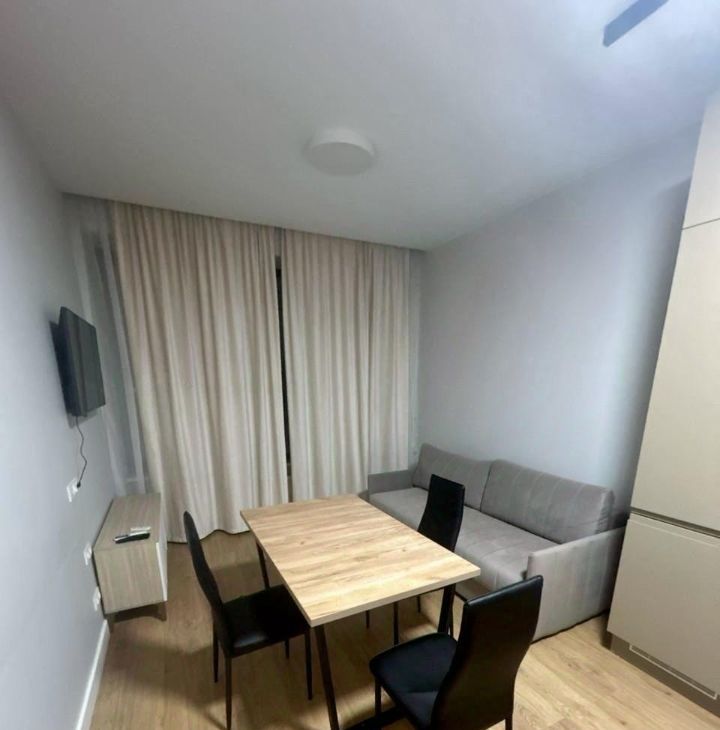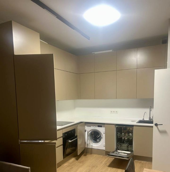 В апартаменте есть все необходимое для комфортного проживания. Встроенный кухонный гарнитур, бытовая техника, спальные места.