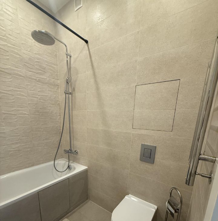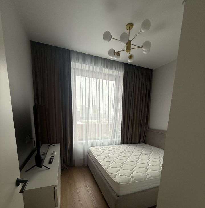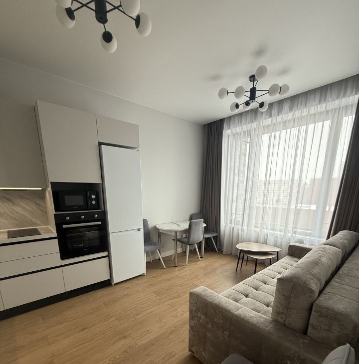 Квартира с евроремонтом, продуманной планировкой и окнами, выходящими во двор. Внутри есть вся необходимая мебель для проживания. Кухня оборудована современной техникой: холодильник, посудомоечная машина, стиральная машина, микроволновая печь, электрическая плита и духовой шкаф. В квартире также установлены кондиционеры. Ванная комната оснащена ванной, что обеспечивает дополнительный комфорт.