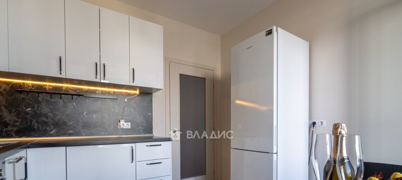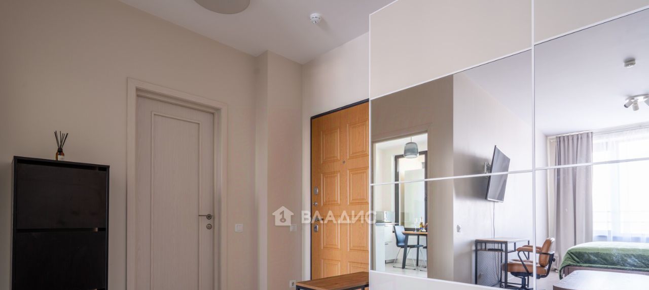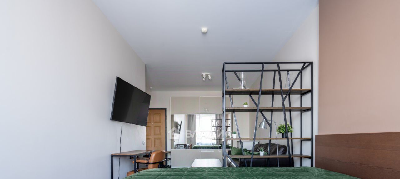 спальня с двуспальной кроватью (с выдвижными коробами для хранения) и прикроватными тумбами, рабочее место, lounge-зона с TV-панелью, шкаф-купе для хранения вещей; изолированная кухня, c обеденной группой у выхода на лоджию с панорамными окнами, оснащена холодильником, варочной панелью, духовым шкафом, СВЧ-печью, стиральной машиной; санузел с ванной - совмещён, оборудован полками, зеркалом и тумбой с выдвижными ящиками;