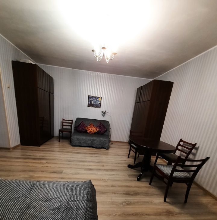 Сдаётся просторная и светлая однокомнатная квартира в тихом спальном районе с шикарным видом из окна.Размер комнаты 24 квадратных метра.8минут пешком до станции Перово. В квартире есть всё необходимое для проживания:холодильник,стиральная машина,микроволновая печь, кондиционер.В комнате: двухспальная кровать,диван(раскладывается),два шкафа,стол ,стулья,тумбочка.