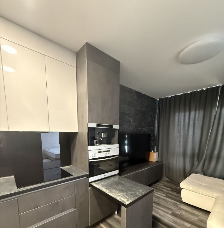 Общая площадь квартиры составляет 36 кв. м, состоит из большой кухни-гостиной и спальни.
