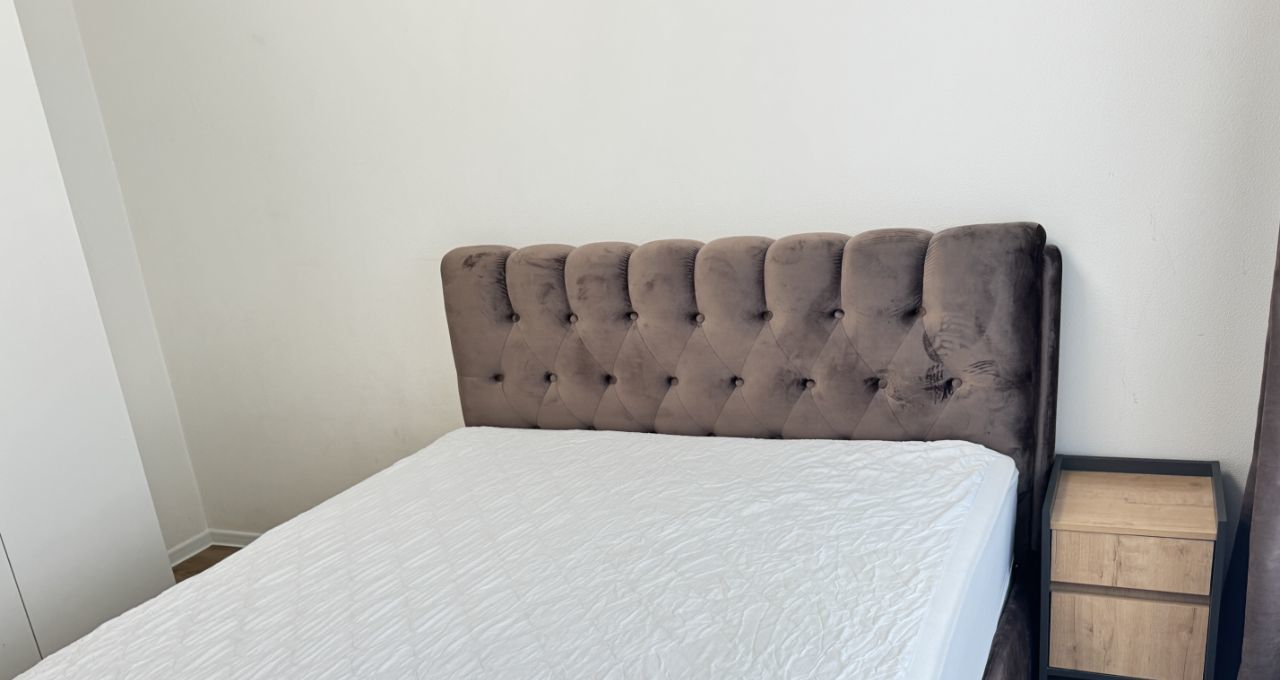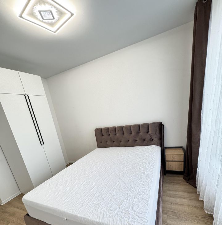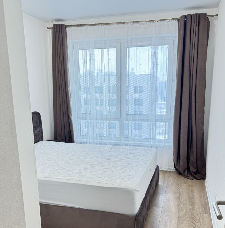 В спальне уютная, спокойная обстановка: двуспальная кровать с шикарным высоким анатомическим матрасом 30см высотой , шкаф для одежды. Стоимость аренды 67 тыс плюс коммунальные платежи и интернет . Залог можно разбить на 2 месяца. При проживании меньше 4 мес залог не возвращается. Строго без животных