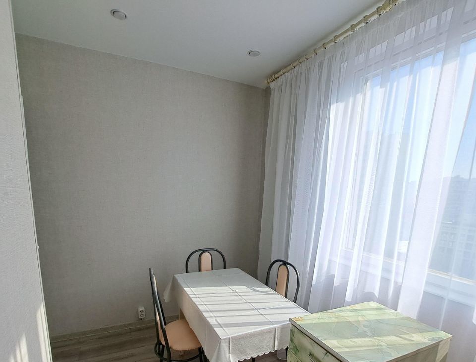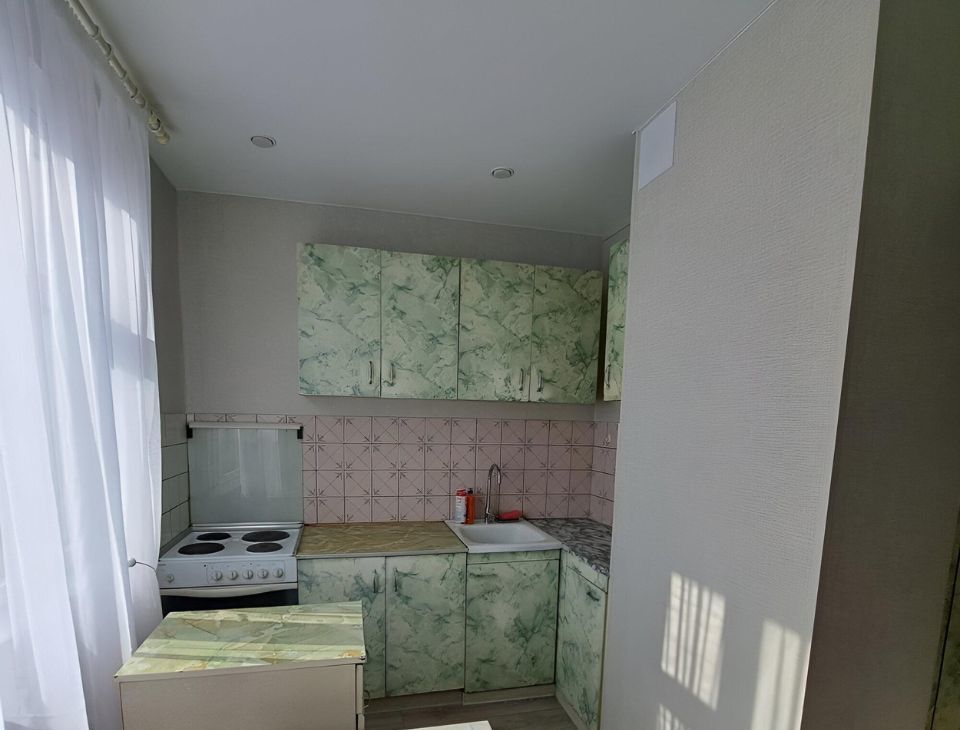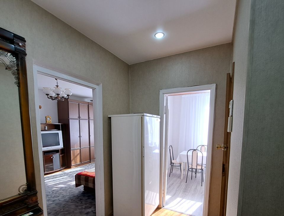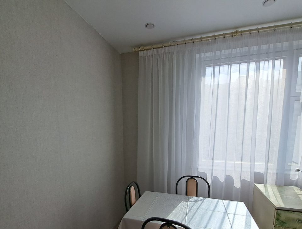 Светлая, чистая, уютная квартира с необходимой мебелью для проживания. Балкон застеклен, сан.узел совмещен. Выполнен косметический ремонт, на кухне пол ламинат, натяжной потолок.