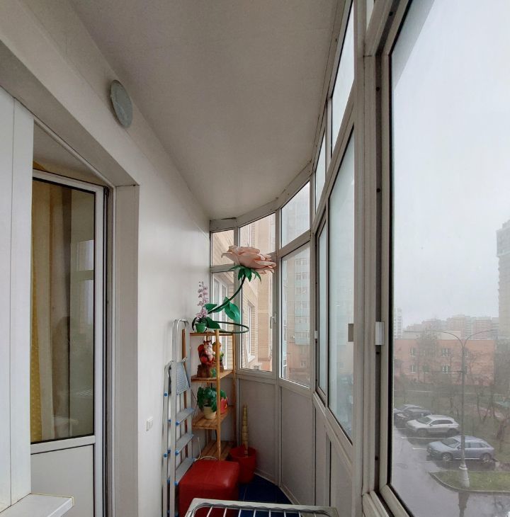 Окна - стеклопакеты, ОКНА ВЫХОДЯТ ВО ДВОР в сторону коттеджного поселка. Застекленная лоджия.