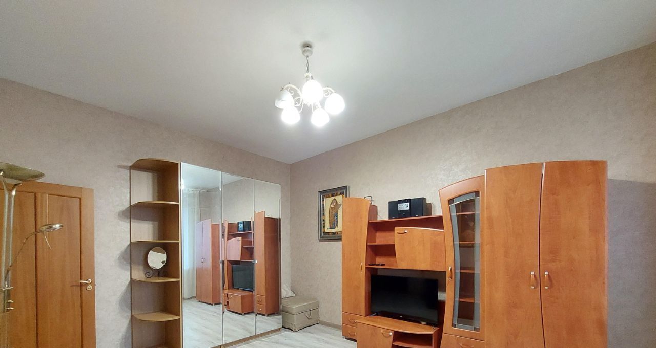 * В комнате 17 м2- вместительный зеркальный шкаф-купе (Икея), модульная мебель - горка из нескольких секций. вкл. платяной шкаф, 2-х спальный диван, ТВ ЖК.
