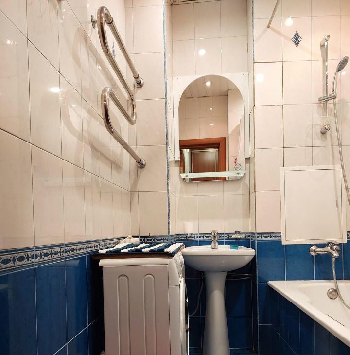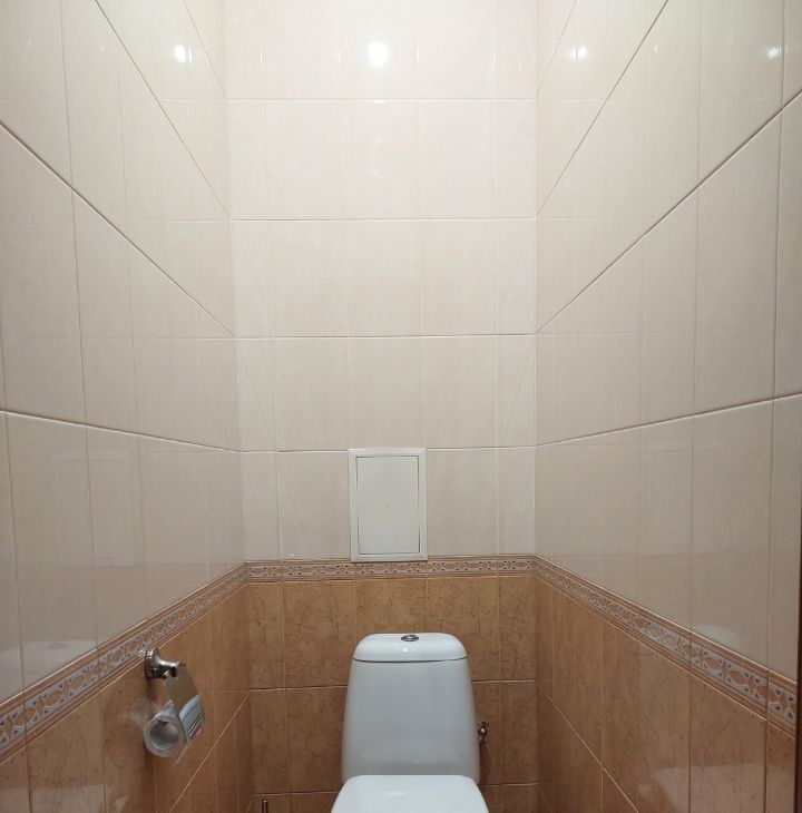 * С/у раздельный, отделан плиткой до потолка, подвесной потолок, подключена стиральная машина-автомат.