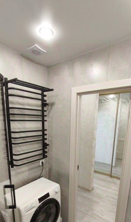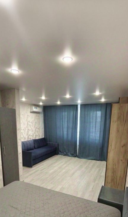 Квартира с евроремонтом, полностью готова к проживанию. В просторной комнате и на кухне есть вся необходимая мебель. Окна выходят во двор, что обеспечивает тишину и уют. В кухне установлена современная техника: холодильник, посудомоечная машина и стиральная машина. В комнате — телевизор и кондиционер. В ванной комнате есть душевая кабина.