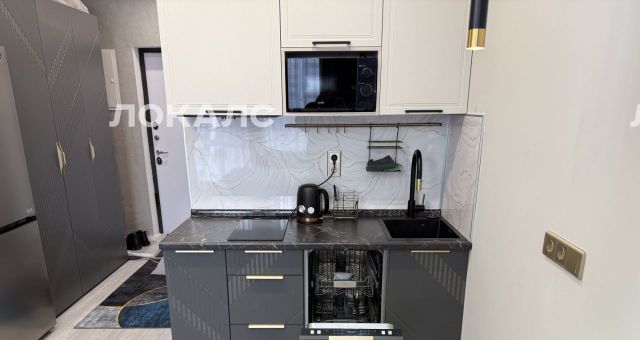Пространство удобно организовано: жилая площадь в 17 кв. м и кухня 5 кв. м. Квартира полностью меблирована: есть мебель как на кухне, так и в комнате. Из техники в вашем распоряжении кондиционер, холодильник, посудомоечная и стиральная машины, а также телевизор. Ванная комната оборудована ванной и душевой кабиной. Подключён интернет, поэтому всегда можно оставаться на связи.