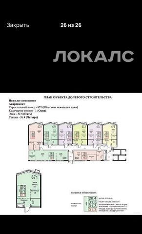 1-к кв. Москва Новоостаповская ул., 20 (31.3 м²)