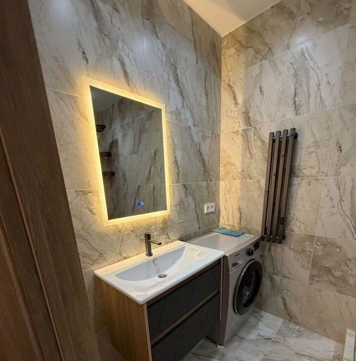 В квартире вся необходимая мебель и техника, включая посудомоечную машину и духовой шкаф. Имеется вместительная гардеробная в спальне.Теплые полы.