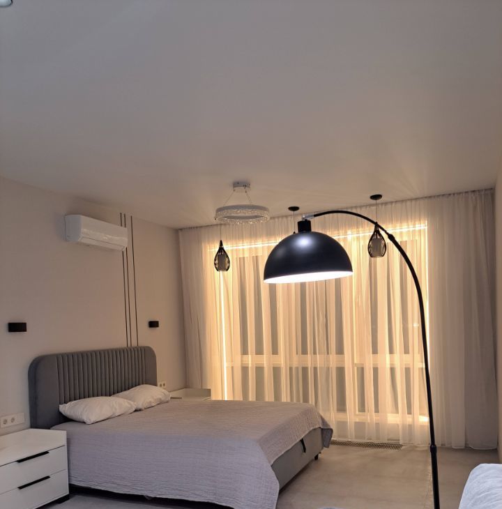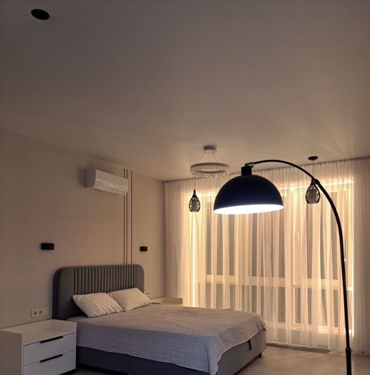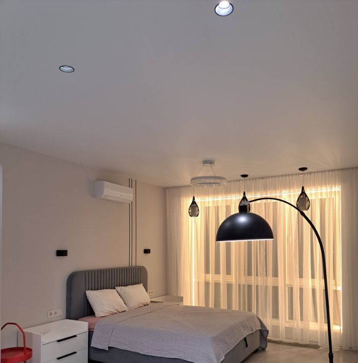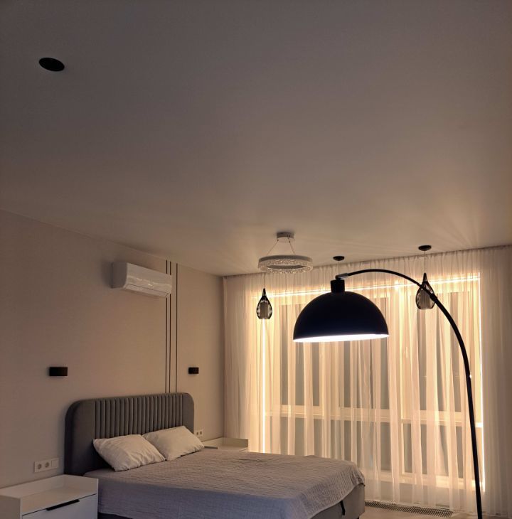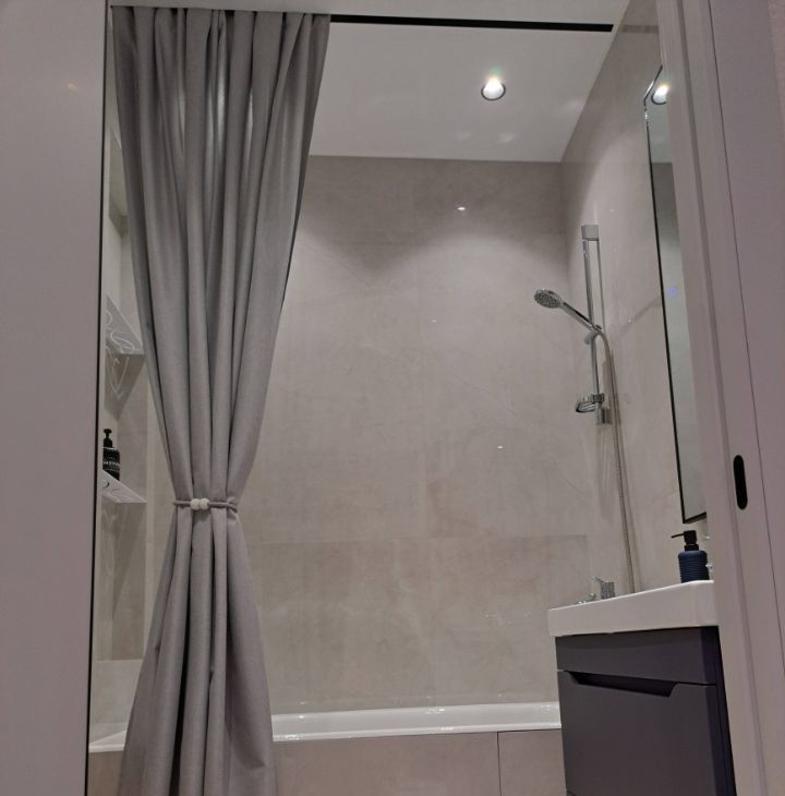Инстяляция, дизайнерский свет , различное освешения, паряшая ванна и зеркала.