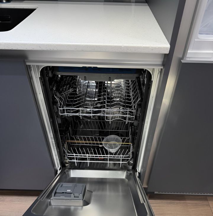Функциональная кухня полностью укомплектована встроенной техникой Electrolux: холодильник, посудомоечная машина, духовой шкаф и индукционная панель, производительная вытяжка. Премиальная сантехника на кухне OMOKIRI.