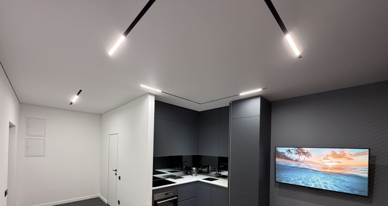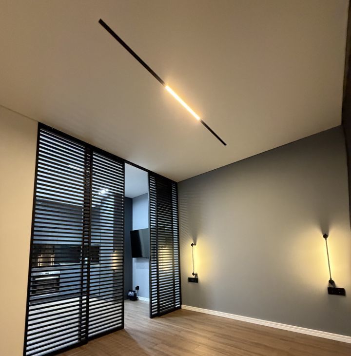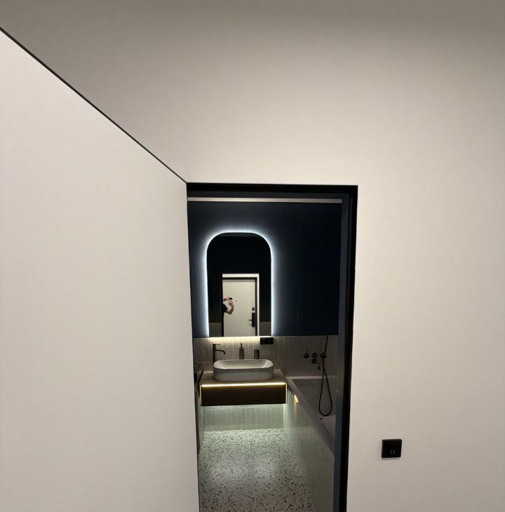 За климат в квартире отвечает сплит система кондиционирования и 2 зоны теплого пола с электронными терморегуляторами- прихожая и санузел. В квартиру заведен высокоскоростной интернет, установлен Wi-Fi роутер. Встроенное трековое освещение от Maytoni и Dankers, предусмотрены различные сценарии освещения 3000к-6500к с теплого к холодному и регулировка яркости от 1% - до 100%.