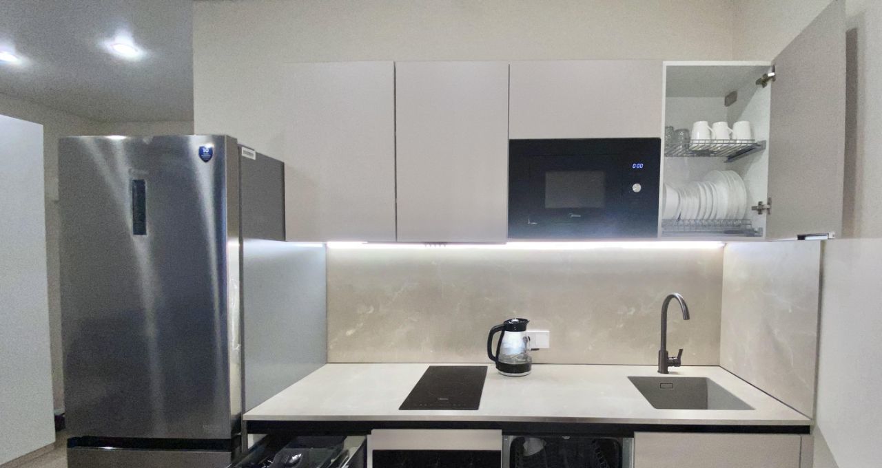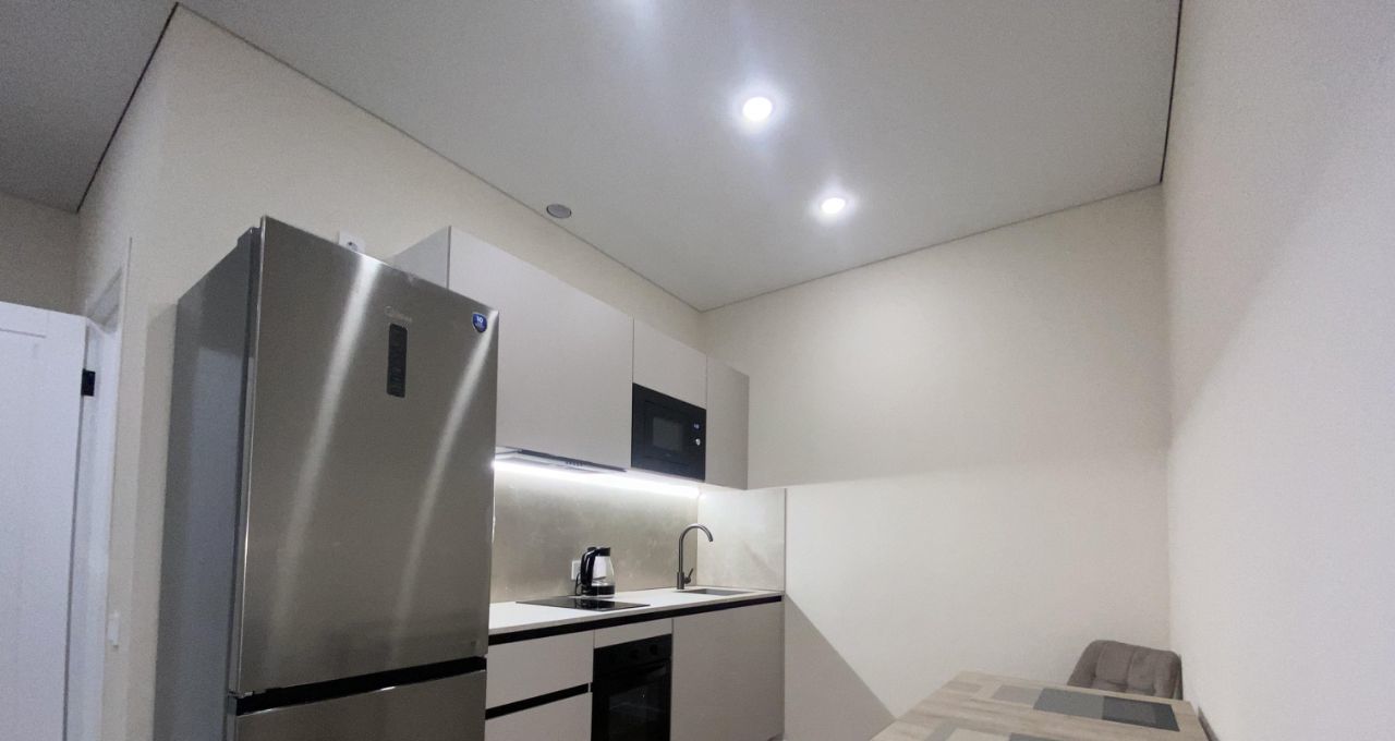 В квартире выполнен свежий евро ремонт. Кухня полностью комплектована всей необходимой бытовой техникой (духовой шкаф, посудомоечная машина, микроволновая печь, электрочайник, кондиционер)