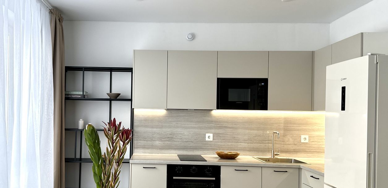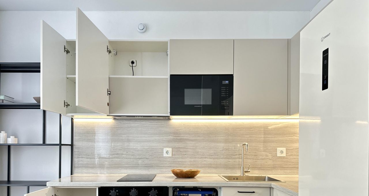 Наполнение продумано собственником до МЕЛОЧЕЙ! Полностью меблированная квартира! Кухня оборудована техникой, а именно: варочная панель, духовой шкаф, вытяжка, СВЧ, посудомоечная машина, чайник, вместительный холодильник, имеются кухонные принадлежности/посуда. Удобный диван, оборудованный ТВ-зоной. Обустроенная рабочая зона. Комфортная кровать с подъемным механизмом и системой хранения. Много места для хранения ваших вещей, включая гардеробную. В квартире установлен кондиционер, будет комфортно в любую погоду.