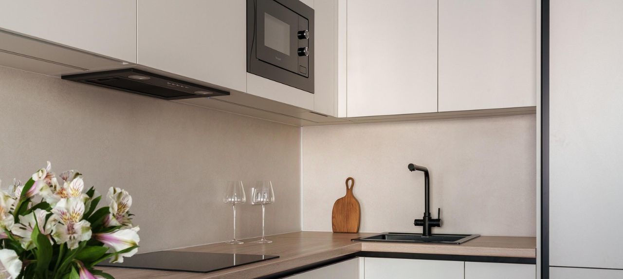 — Большая кухня-гостиная: вся встроенная техника, холодильник, варочная панель, духовой шкаф, посудомоечная машина, СВЧ, кондиционер, телевизор, рабочий стол, большой удобный раскладной диван.