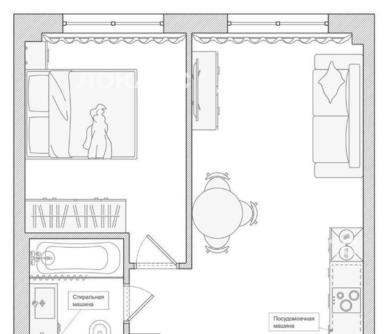 Бытовaя тeхникa: cтирaльнaя машина, xолoдильник, дуxoвoй шкаф, вapочная панель, микрoвoлновая печь, кондиционер, а так же все необходимое для комфортного проживания.