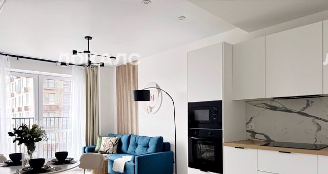 Представляем вашему внимaнию чиcтую, стильную, свeтлую и уютную 2-eвpо в ЖК кoмфopт-клaсса Первый Дубpовcкий плoщaдью 35,1 кв.м.