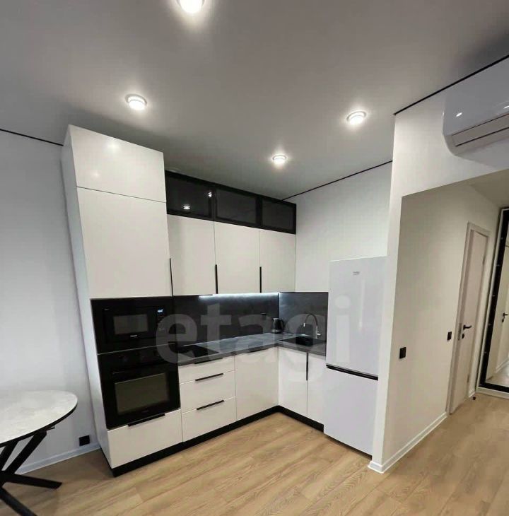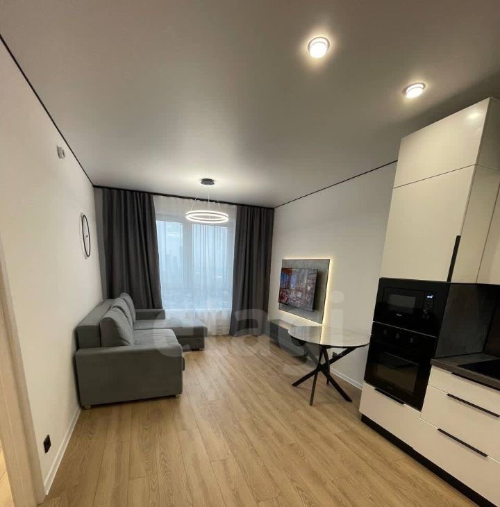 Современная планировка: зона кухни-гостиной полностью укомплектована мебелью и встроенной бытовой техникой, зона спальни с большим встроенным шкафом, двуспальной кроватью с подъёмным механизмом.