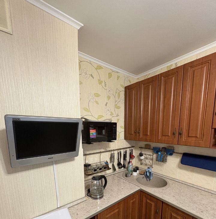 Квартира укомплектована мебелью, бытовой техникой (стиральная машина, микроволновая печь, телевизоры, чайник, холодильник,пылесос, посудомоечная машина,гриль)