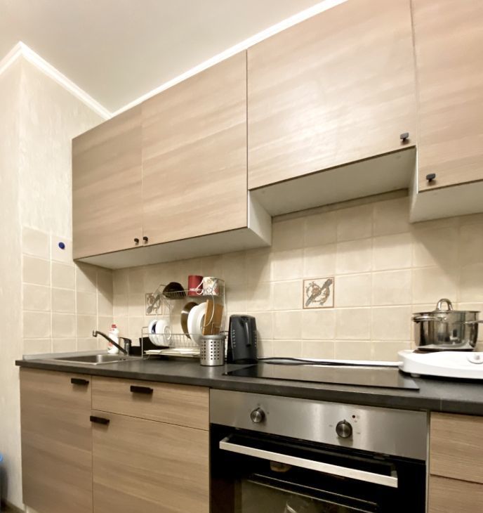 Имеется вся необходимая мебель и техника для комфортного проживания: холодильник, стиральная машина, индукционная плита, раскладной диван, кровать.
