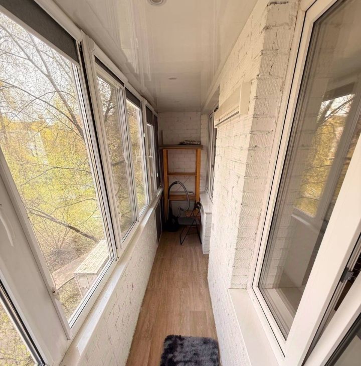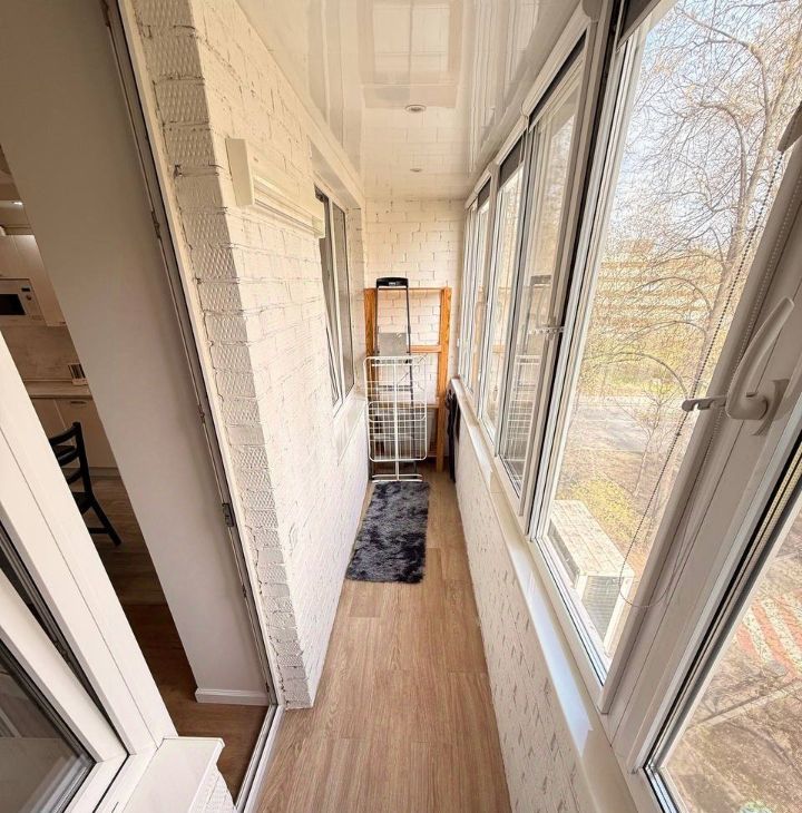Функциональная планировка: просторная кухня - совмещенный санузел - просторная комната - застекленная лоджия.