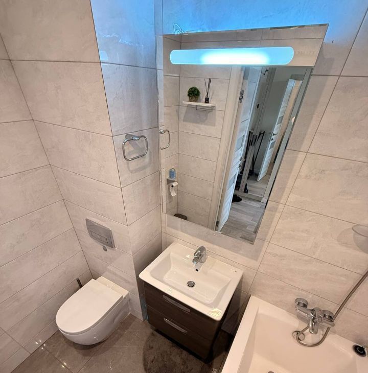 Выполнен качественный ремонт. Квартира укомплектована современной мебелью и техникой от ведущих производителей.