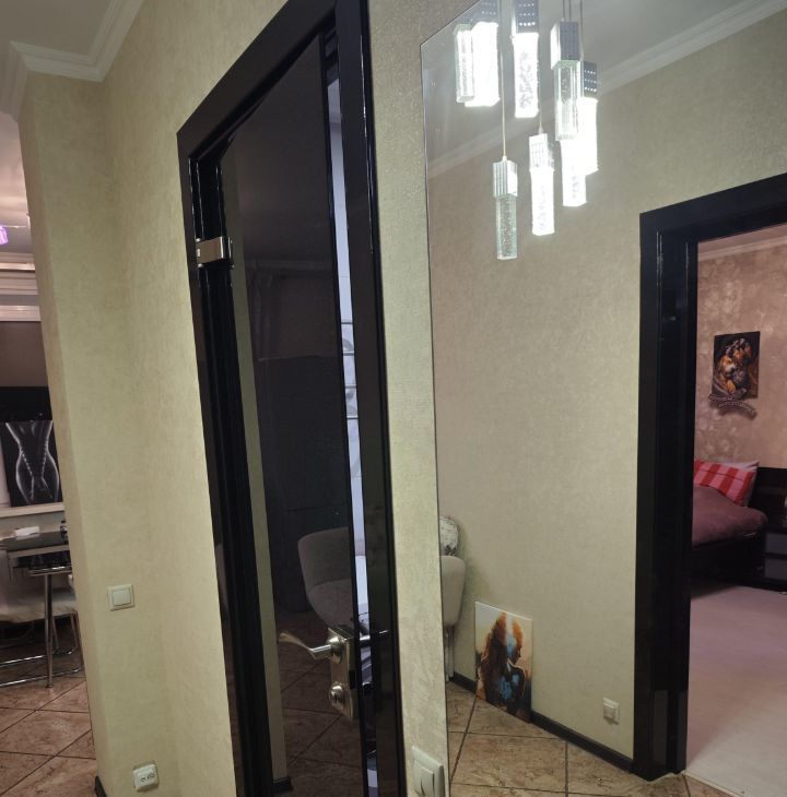 Квартира выполнена в дизайнерском стиле Есть вся необходимая мебель и техника: кондиционер, холодильник, посудомоечная и стиральная машины, телевизор, в комнате большой зеркальный шкаф во всю стену. Совмещенный санузел оборудован ванной и современной сантехникой.