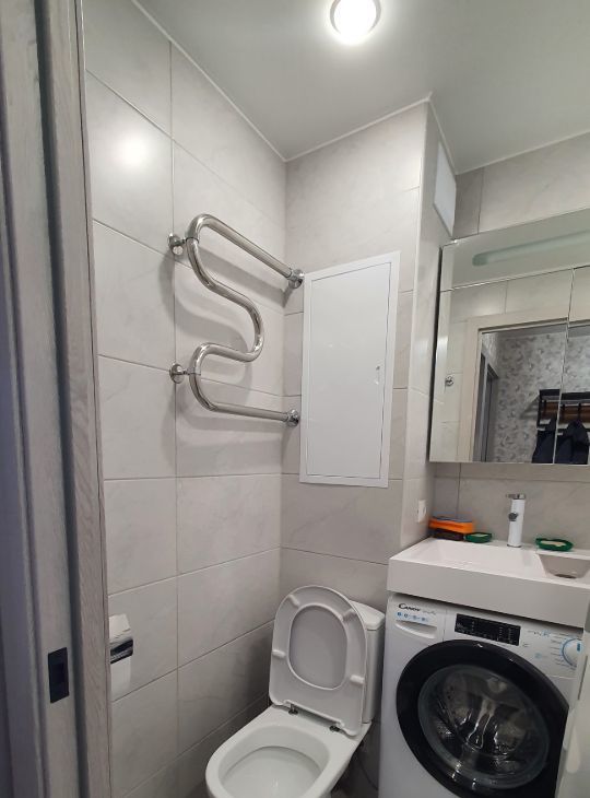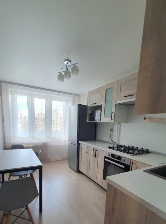 Квартира с евроремонтом, светлая и просторная. Жилая площадь составляет 21 кв. м, кухня — 9 кв. м, где есть вся необходимая мебель. В квартире есть современная техника: холодильник, телевизор и стиральная машина. Санузел совмещенный, с ванной, окна выходят во двор, что обеспечивает тишину и уют. Высота потолков 2,64 метра, есть один балкон для вечернего отдыха.