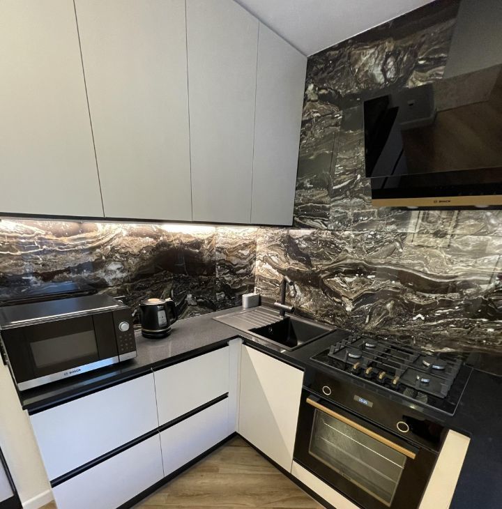 - кухня укомплектована всей бытовой необходимой техникой Bosch и Siemens;