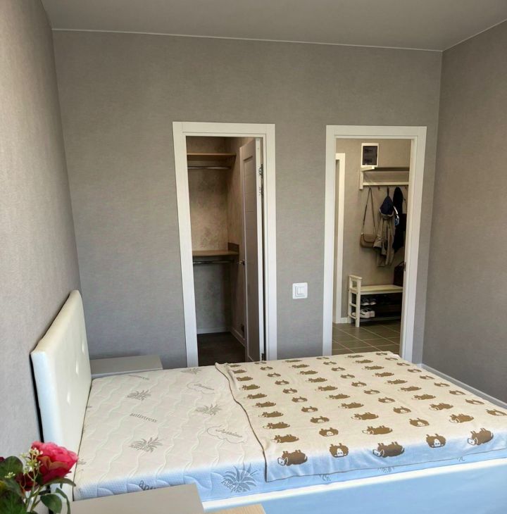 Полноценная однокомнатная квартира с гардеробной, балконом, кухня изолированная, спальня с двуспальной кроватью, новый матрац.