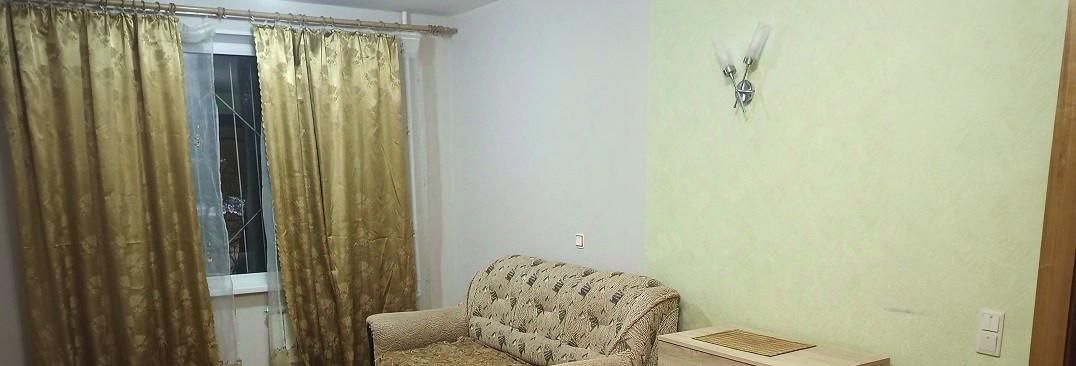 Квартира оборудована всей необходимой мебелью и техникой для комфортного проживания: кухонный гарнитур, электрическая плита, холодильник, стиральная машина, шкафы и двуспальный диван трансформер — смотрите фото.