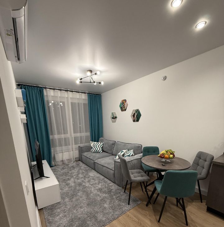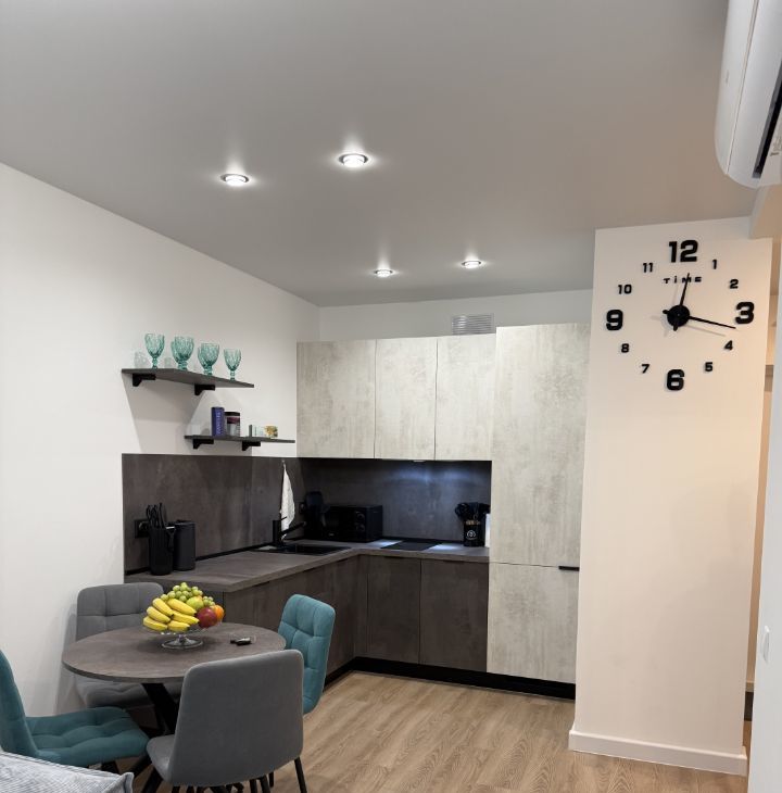 Просторная квартира на 10 этаже с отдельной спальной и большой кухней-гостиной.