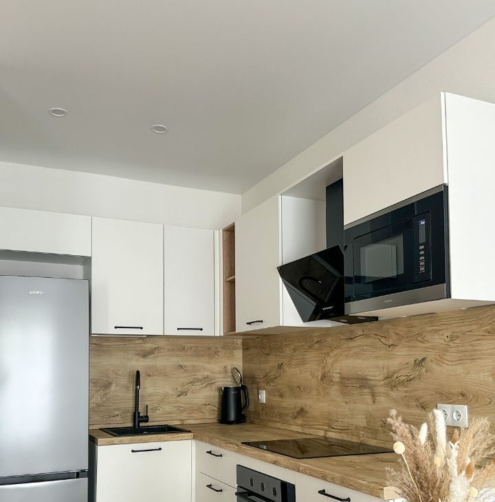 Есть вся необходимая бытовая техника для комфортного проживания: кондиционер, стиральная машина, холодильник, варочная панель, телевизор, электрический чайник, духовой шкаф, микроволновка, вытяжка.