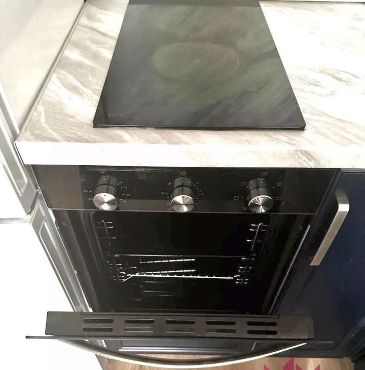 кондиционер, микроволновка, духовой шкаф, варочная панель, телевизор, стиральная и посудомоечная машинка.