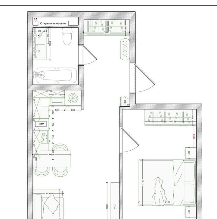 Площадь квартиры 44м2.