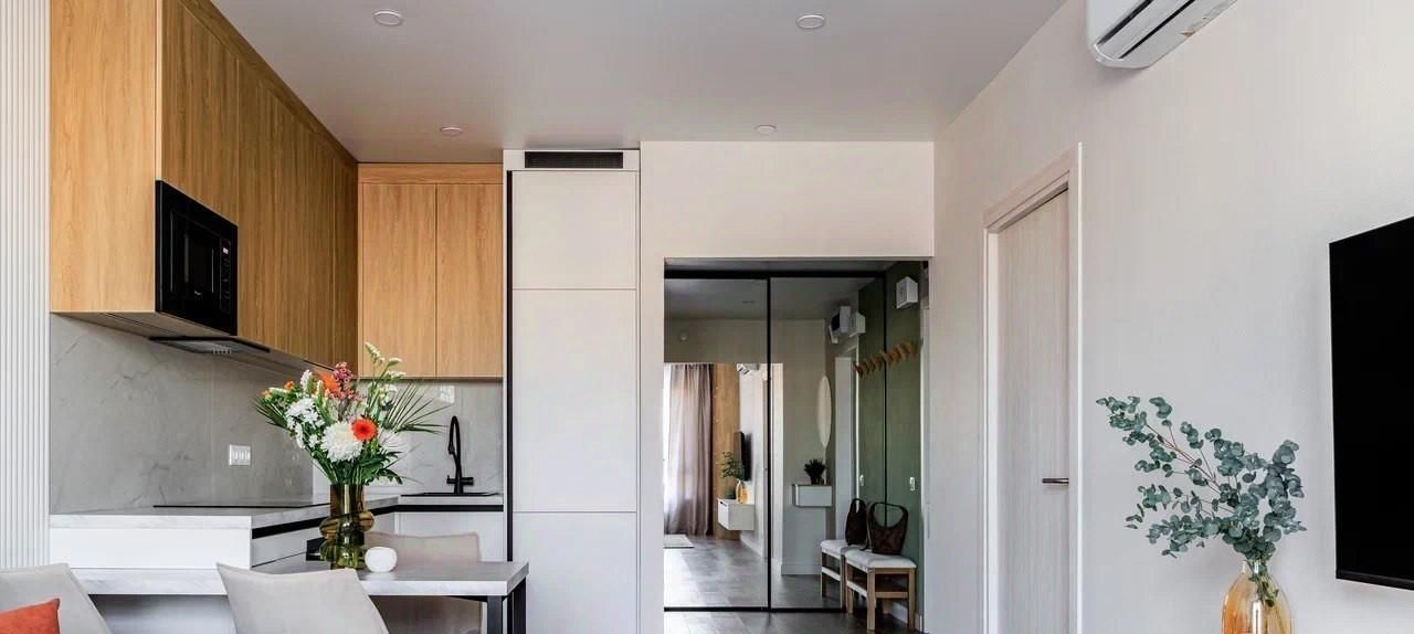 В квартире выполнен качественный ремонт, удобная мебель в комнате и на кухне создают комфортное пространство для жизни.