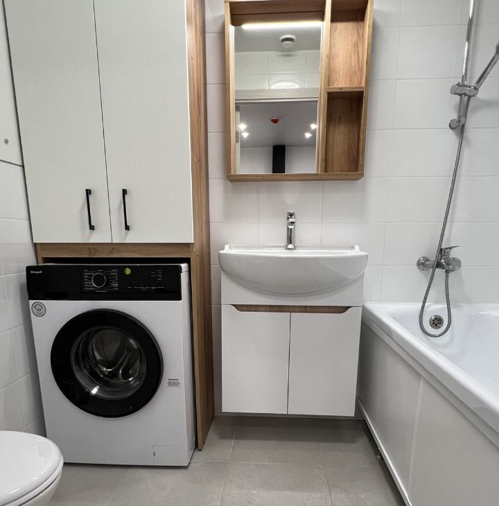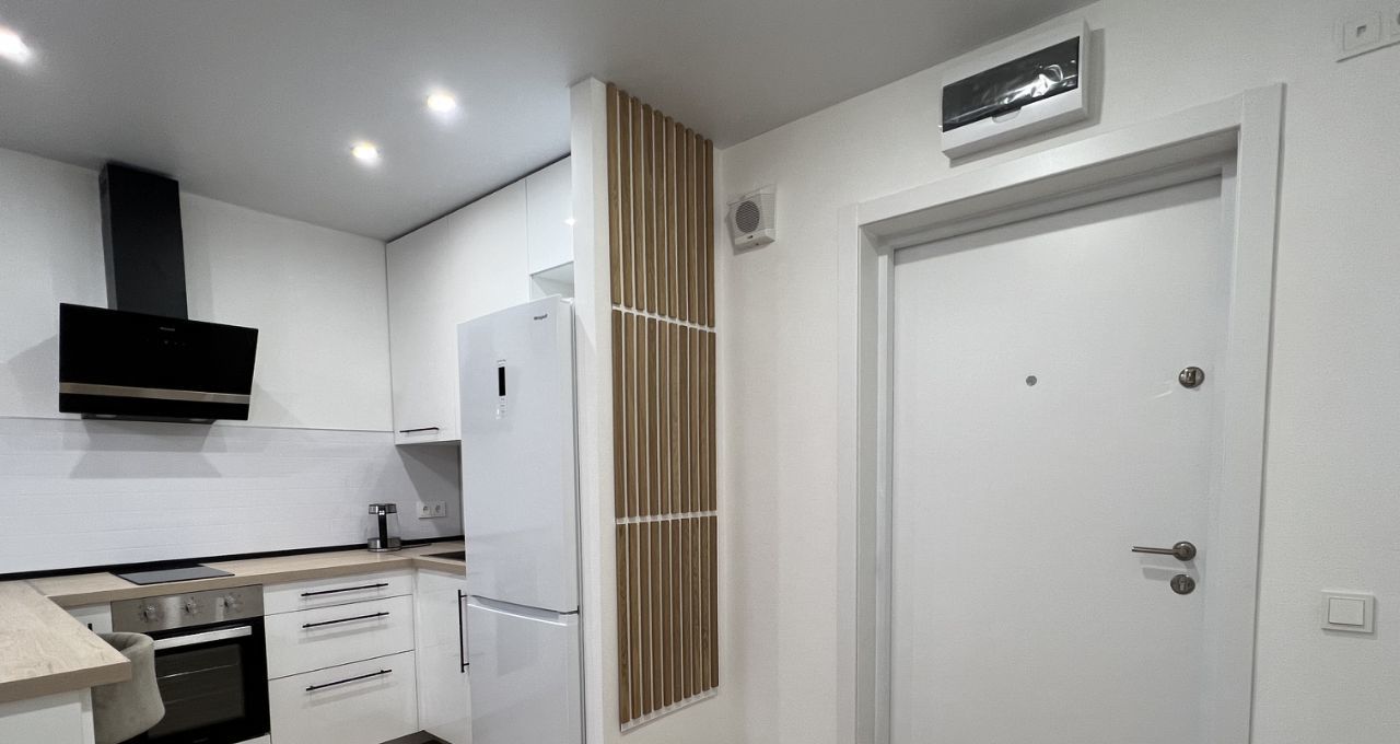 Квартира с косметическим ремонтом. Внутри есть все необходимое для комфортного проживания: на кухне и в комнате есть мебель, а также современная техника — кондиционер, холодильник, телевизор и стиральная машина. Санузел совмещенный, в ванной комнате установлена ванна. Окна выходят на улицу.