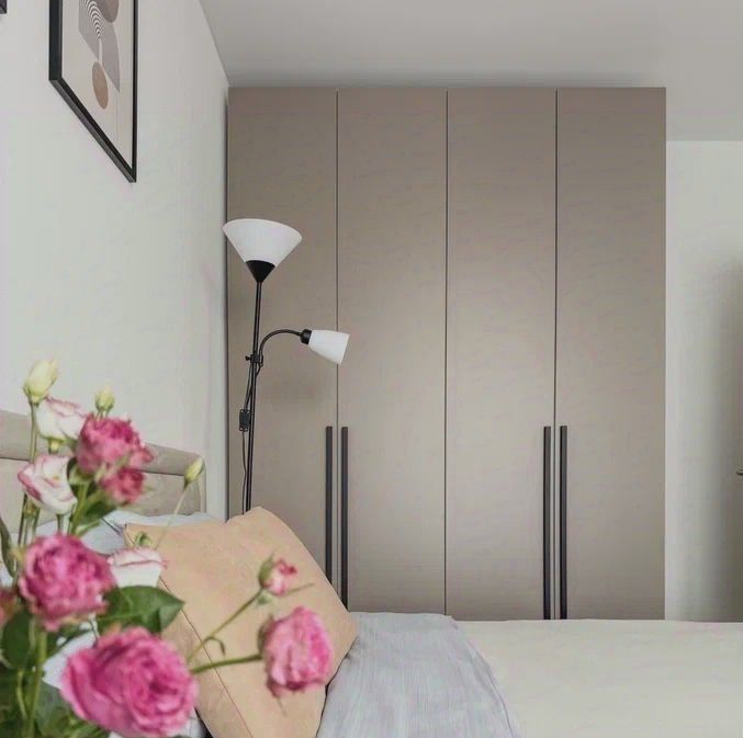 в спальня (двуспальная кровать с тумбой , максимально возможное число мест для хранения)