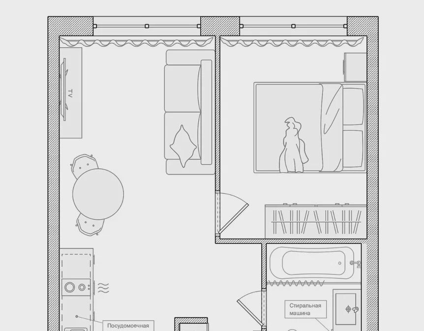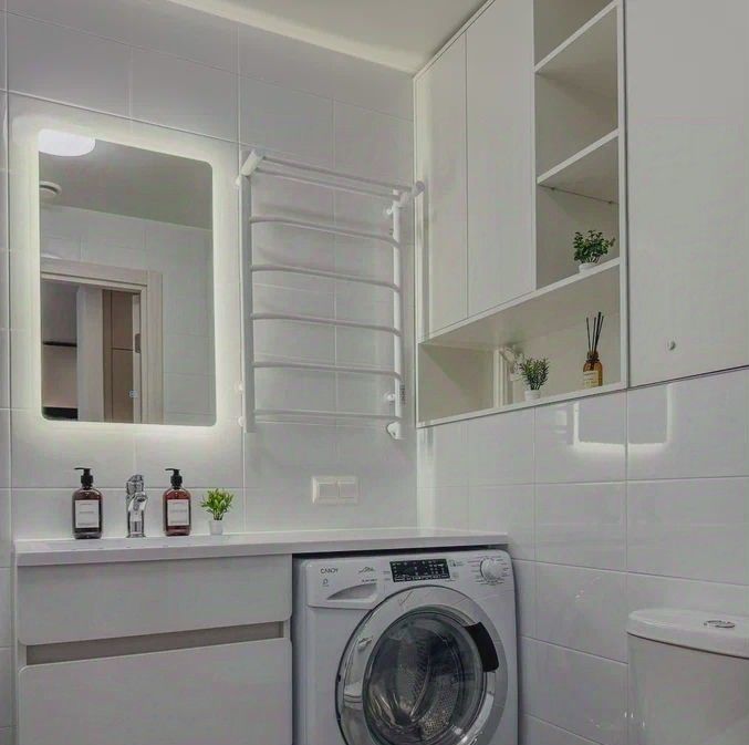 - санузел (ванна, стиральная машина с функцией сушки белья,зеркало, место для хранения)
