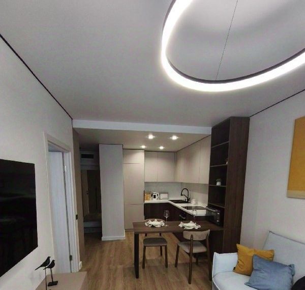 - Уютная просторная комната с обеденной зоной и телевизором;