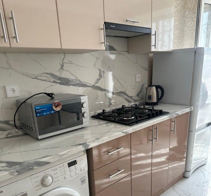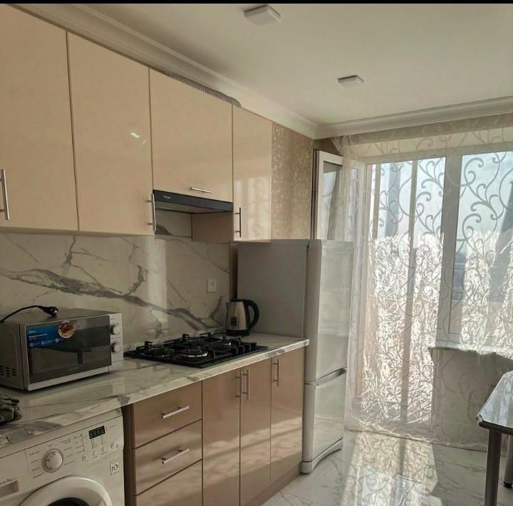 Однокомнатная квартира в хорошем состоянии. Полностью меблирована, есть вся необходимая бытовая техника. Кухня оборудована, санузел совмещён. Чистый подъезд, тихие соседи. Удобная транспортная доступность, рядом магазины и сервисы.Рассматриваются арендаторы любой национальности. Торг возможен .