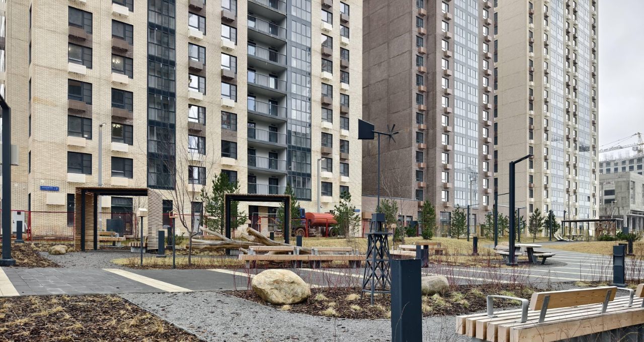 Есть свой закрытый двор, а также аллея с баскетбольной площадкой, тренажёрами, скамейками, беседками и фонтаном.