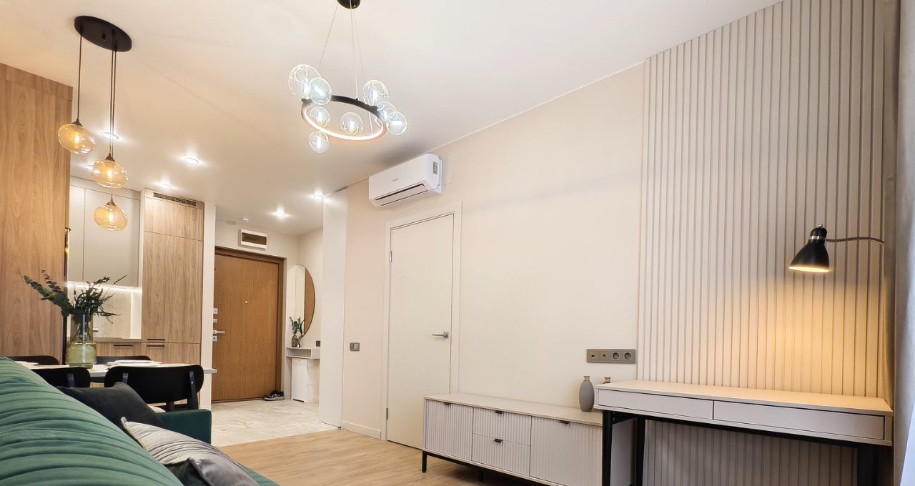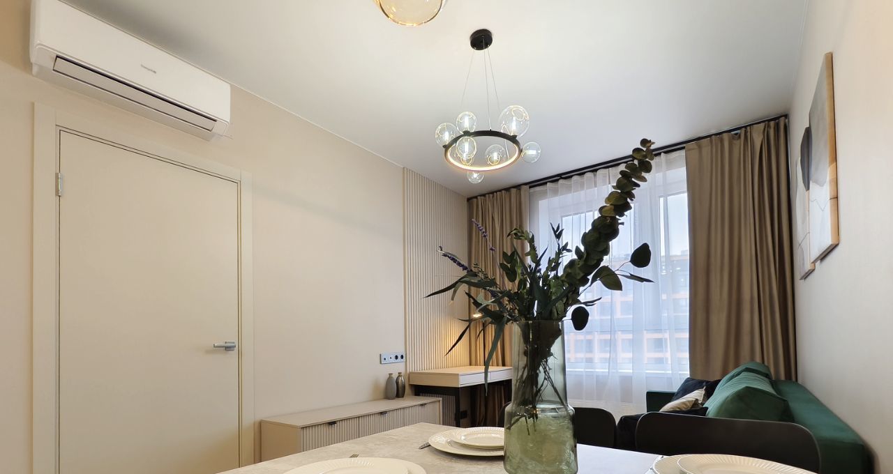 Есть абсолютно всё для комфортного проживания: тёплый пол в прихожей, на кухне и в ванной, 2 кондиционера, бризеры, установлены фильтры для воды на кухне, стиральная машина с сушкой, водонагреватель(на случай отключения горячей воды), посудомоечная машина, кровать с подъёмным механизмом и многое другое.