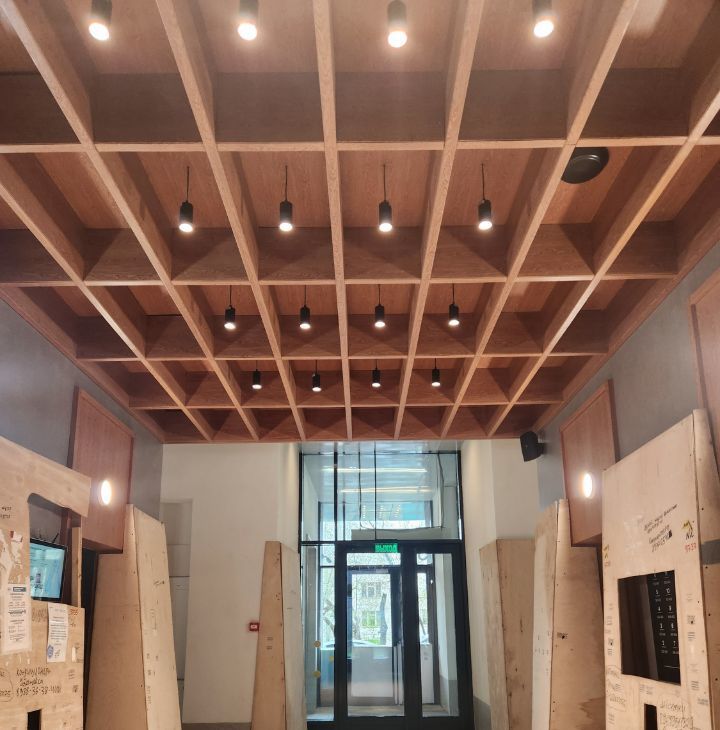 Во дворе имеются спортивная площадка, детская площадка, коворкинг для работы на свежем воздухе.