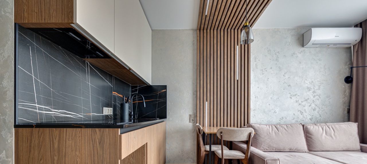 - Ремонт был выполнен для себя, с заботой о каждой детали: двухспальный раскладной диван, полы с подогревом, фильтры для воды