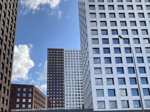 Дизайн квартала от архитектурного амстердамского бюро de Architekten Cie, кирпичные фасады дома, презентабельная входная группа.