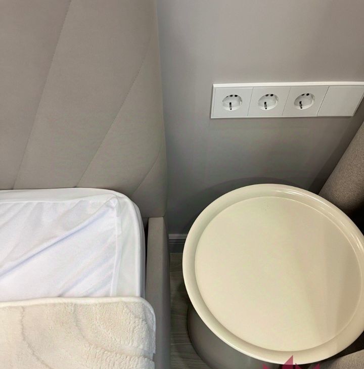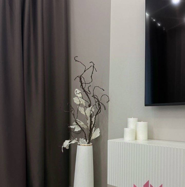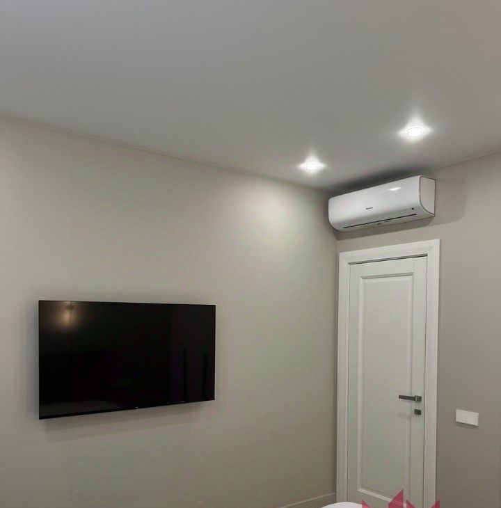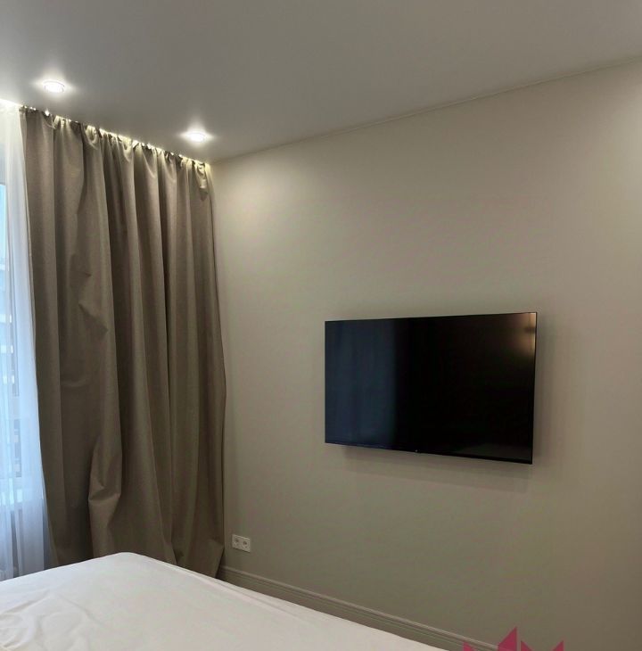 Спальня представляет собой просторное пространство, где всё предусмотрено для Вашего отдыха: большая кровать Кинг-сайз с подъёмным механизмом и ортопедическим матрасом, прикроватный журнальный столик, вместительный шкаф со множеством ячеек и зоной под хранение длинной одежды, телевизор на подвесном кронштейне для обеспечения максимального функционала площади, блэкаут шторы из качественного текстиля, а также ещё один очиститель воздуха и кондиционер.