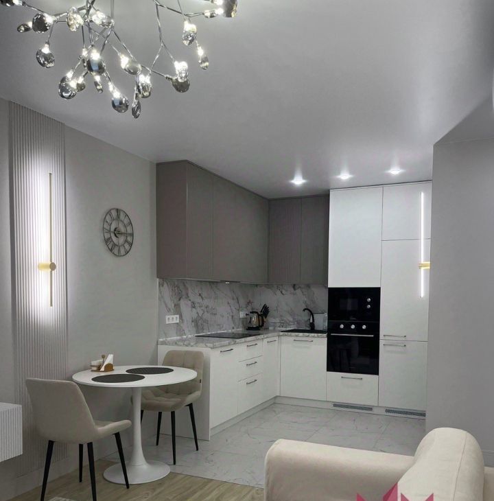 Квартира представлена в продуманной планировке: просторная кухня-гостиная, комфортабельная спальня, коридор с вместительным шкафом и совмещённый санузел.