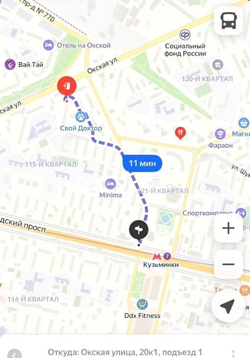 Отличная транспортная доступность: 10 минут ходьбы от метро Кузьминки.